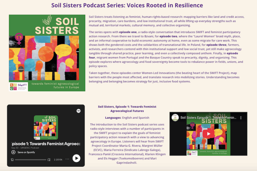 The Portal is a reflection of one of URGENCI’s main partnerships, the SWIFT project. SWIFT is a European collaboration of movements, researchers, and women-led innovations working to make our food systems fairer and more resilient. The Portal, built inside URGENCI’s Learning Hub, is unapologetically feminist: it names the exclusions that women and gender-diverse people face in agriculture and rural policy. You’ll find a podcast series, a map of feminist agroecological futures, grounded case studies, and ready-to-use resources for movements, municipalities, and anyone building dignified, local food economies.
